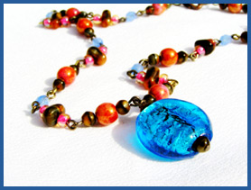 Většina materiálu použitého při tvorbě těchto náhrdelníků je v obchůdku k dispozici